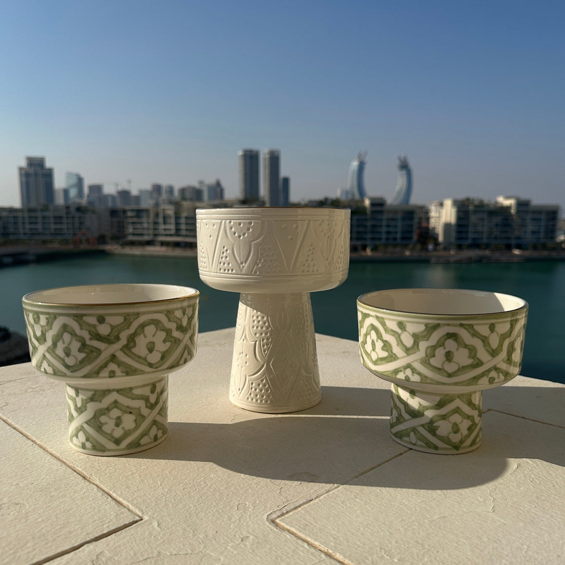 Handmade Snack Bowls (Set of 3) - White & Mint Green