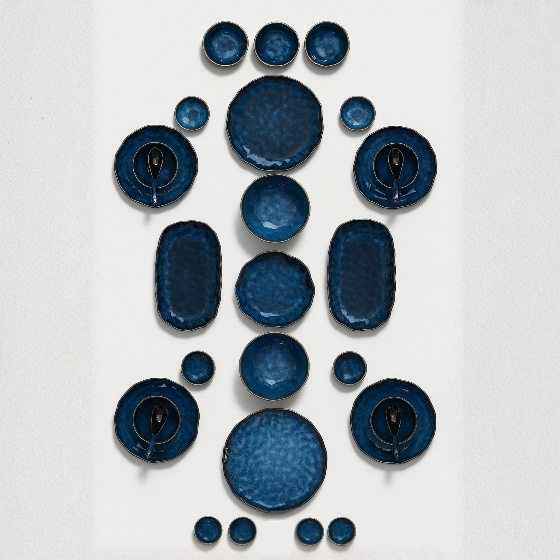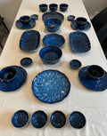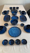 Our classic set for 4 people includes dining plates, soup bowls with spoons, and multiple serving plates and serving bowls. Finished in a deep blue tone, it’s perfect for everyday meals or casual gatherings.